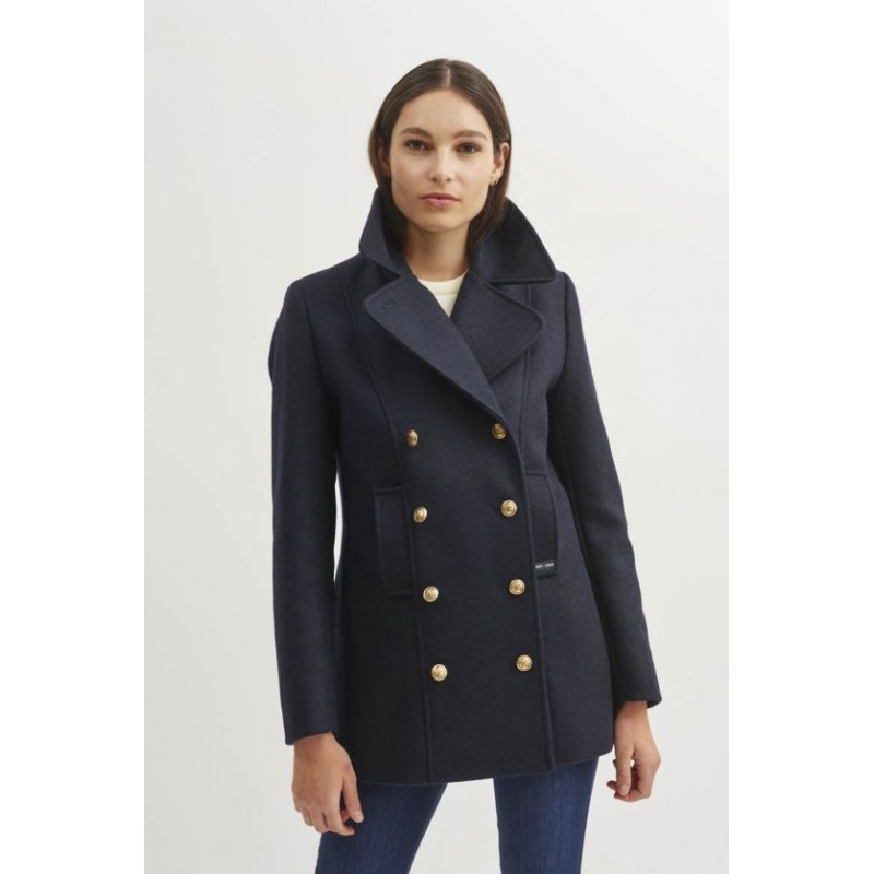 Eine majestätische Jacke mit doppelter Knopfreihe aus reiner Schurwolle präsentiert Saint James in dem Modell Voilure. Die Knöpfe sind schmuck und geben der warmen Jacke einen edlen Touch. Ein Hauch von Uniform Machen die typischen Shirts von Saint James eher den Matrosen aus, so findet sich bei dieser Jacke schon ein Hauch von Käpt'n. Der elegante Schnitt wirkt wie eine Uniform. Mit diesem Kurzmantel aus reiner Schurwolle kann die maritimaffine Dame von Welt sich wirklich majestätisch fühlen. Besonders toll sind die Zierknöpfe mit den Ankermotiven drauf. Sie sind in zwei Reihen angeordnet und verleihen dem Modell Voilure eine gewisse Exklusivität.