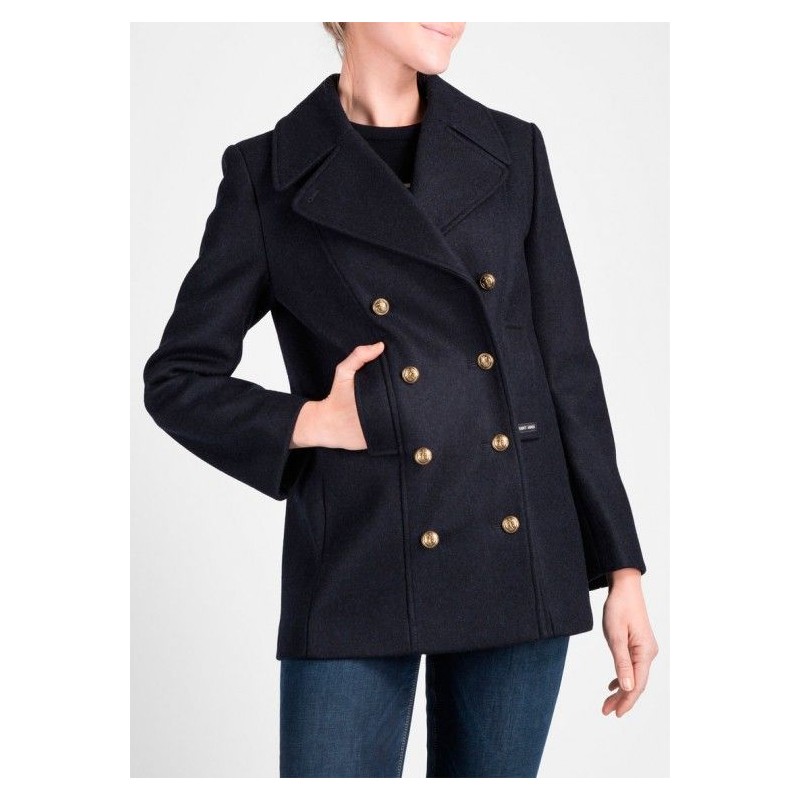 Die doppelte Knopfleiste war besonders praktisch, um die Schließrichtung des Mantels an die Windrichtung anzupassen. Die beiden Außentaschen sind zum Aufwärmen der Hände gedacht. Mit seinem breiten, knöpfbaren Kragen hielt er die Seeleute auch an sehr kalten Tagen warm.