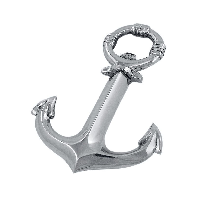Dieser Flaschenöffner und Korkenzieher in Form eines Schiffsankers vereint Funktionalität und maritimes Flair. Er besteht aus glänzend verchromtem Messing und zeichnet sich durch sein originelles und elegantes Design aus, ideal für Liebhaber maritimer Dekoration und von Gegenständen, die von der Welt des Meeres inspiriert sind.