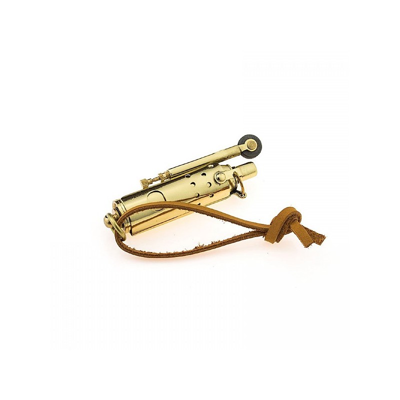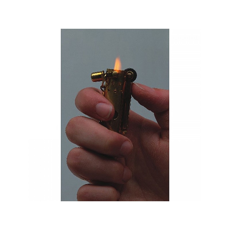 Ursprünglich von Soldaten in den Schützengräben des Ersten Weltkriegs aus verbrauchten Patronenhülsen hergestellt, übernahmen Seeleute dieses praktische Benzinfeuerzeug aus Messing.