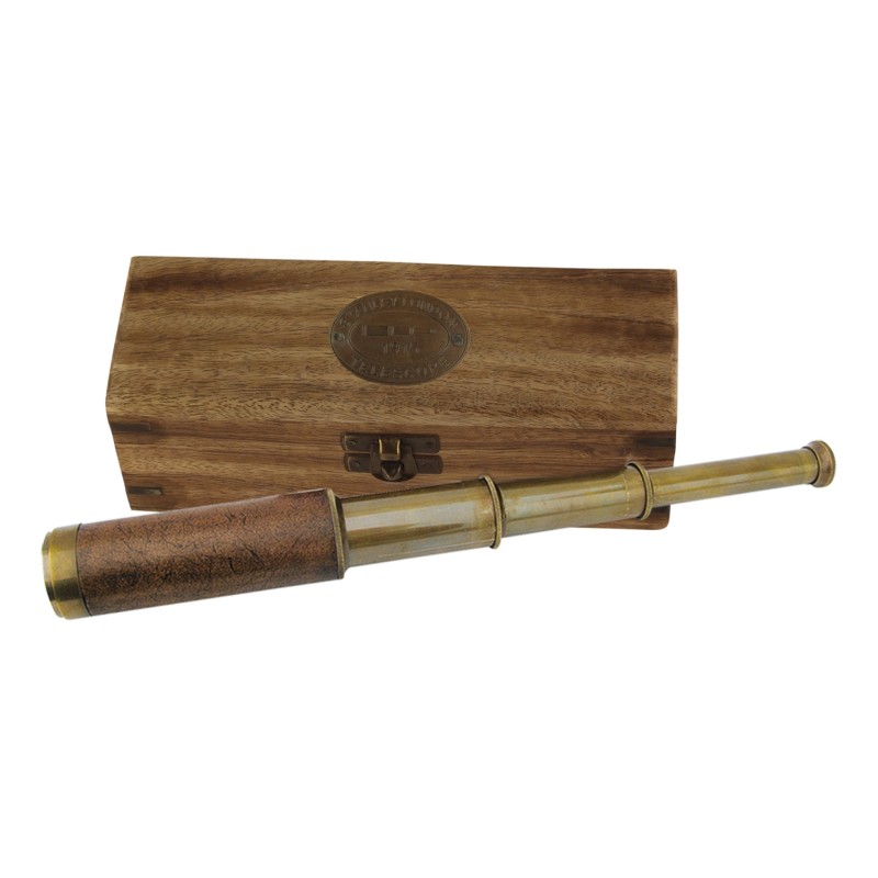 Fernrohr aus Messing und Leder, 25 cm, mit Holzkasten