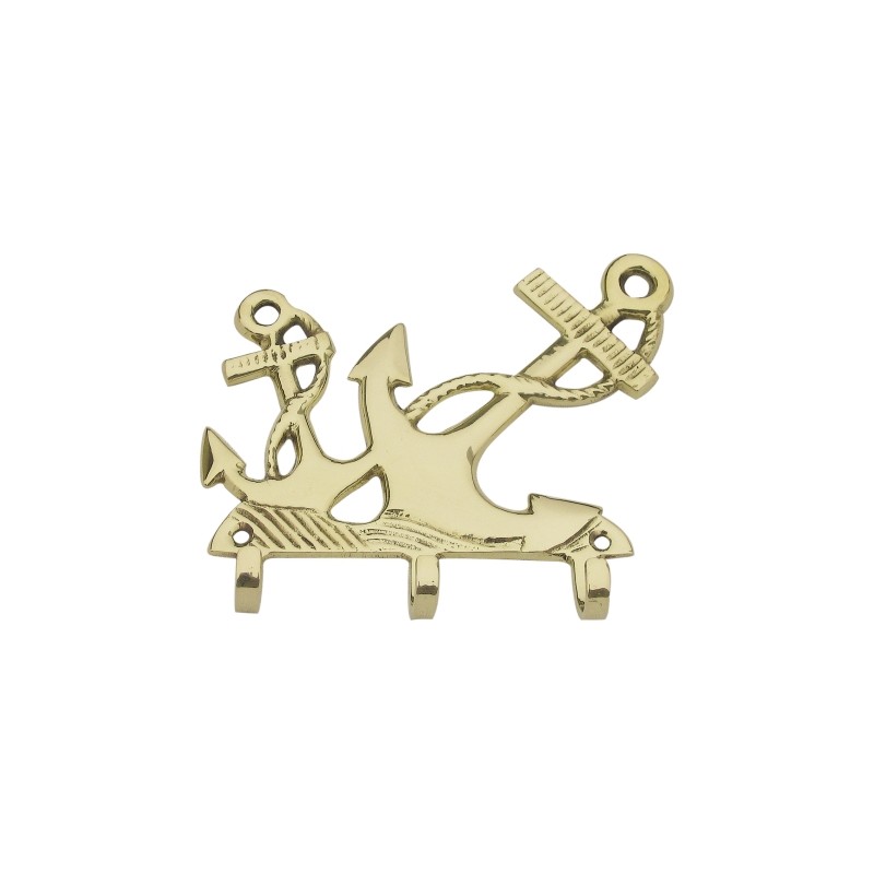 Eine elegante, dekorative und praktische Wandschlüsselbox aus Holz und poliertem Messing, an der 8 Schlüssel oder andere kleine Accessoires aufgehängt werden können.