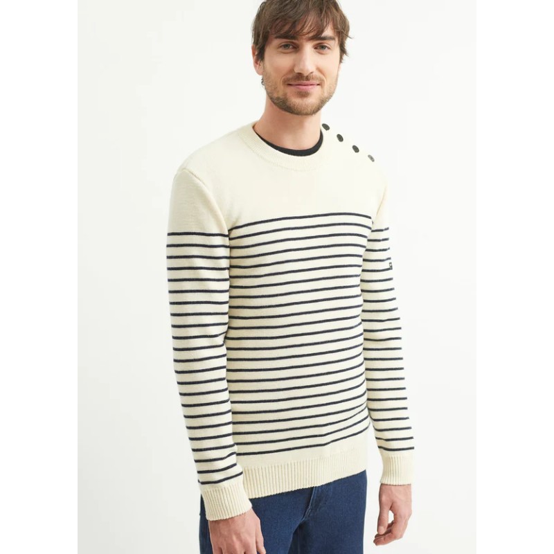 Saint James Seemanspullover Herren, Binic, Ecru/Marineblau