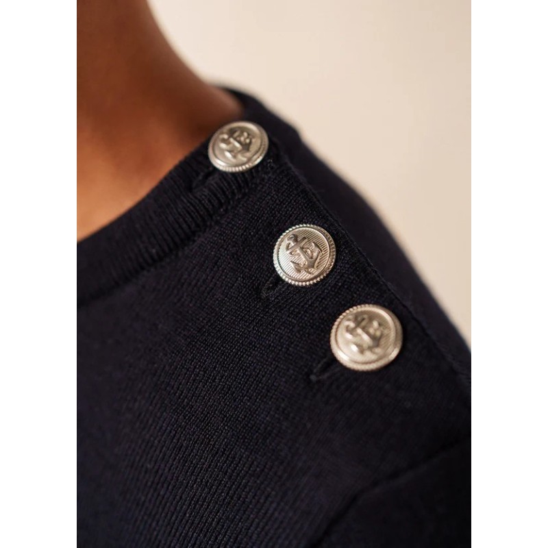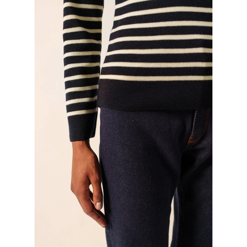 Ein Matrosenpullover mit bequemer Passform, gestrickt in den Ateliers in Saint-James, Frankreich.