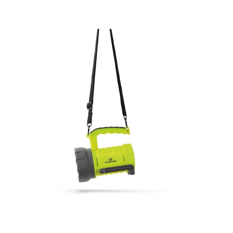 5 Leuchtmodi: Stark, Stark und Breit, Maxi, Eco, Blitz. 2 Sekunden lang gedrückt halten, um in den Blitzmodus zu wechseln. Leuchtdauer 2 bis 26 Stunden. 85 bis 1585 Lumen (je nach gewähltem Modus). Reichweite: 13 bis 905 m. 5000-mAh-Akku, der über Mikro-USB aufgeladen werden kann (Ladezeit: 2,5 bis 3 Stunden). Funktioniert auch mit Lithiumbatterie CR123 A (nicht im Lieferumfang enthalten). Abmessungen: 171 x 153 x 103 mm (L x H x B). Gewicht: 717 g (inkl. Batterie). Wasserdicht: IP67. Lieferung mit Batterie, integrierter Halterung und Tragegurt.