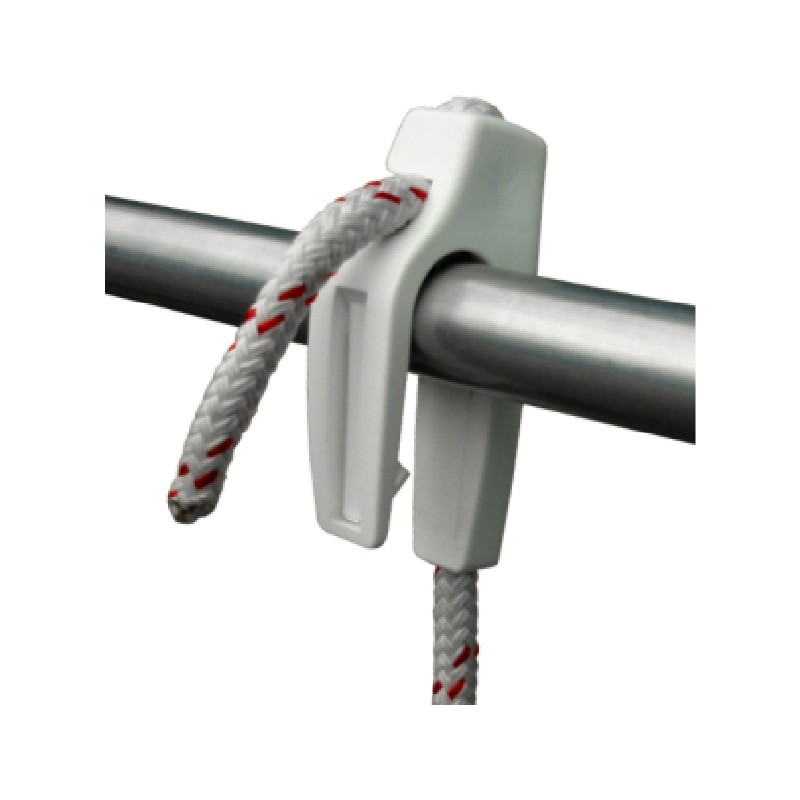 Dispositif en nylon blanc pour fixer et régler en hauteur les pare-battages, sans noeuds. Les pare-battages doivent avoir un bout de 8 mm de Ø. Pour tube diamètre 22mm et 25mm.