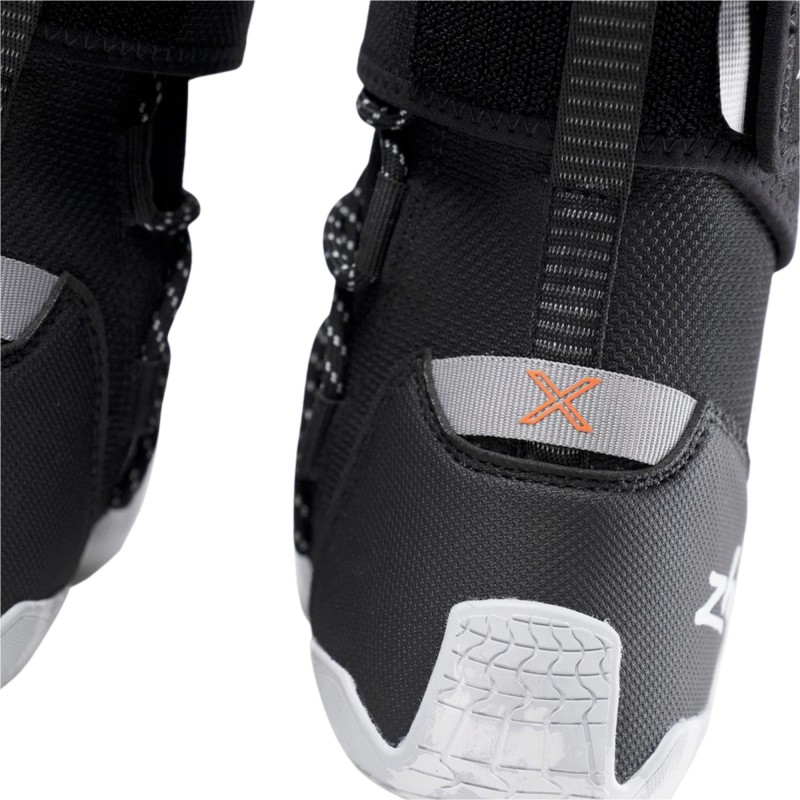 La chaussure Lightweight High Cut X Boot est conçue pour les marins, les pagayeurs et les athlètes de sports nautiques de haut niveau, pour lesquels le poids, l'adhérence et la durabilité ont un impact direct sur les performances. Positionnée dans la gamme X, elle perfectionne les technologies éprouvées de la chaussure Hiking X Boot pour offrir une plateforme plus légère, plus rapide et plus agile pour la voile légère dynamique et les sports de pagaie. Sa construction en tricot 3D côtelé extensible offre un ajustement parfait et flexible, ainsi qu'une excellente respirabilité, permettant à l'eau de s'écouler rapidement et réduisant le poids total pendant l'utilisation. Le système emblématique de laçage latéral sur toute la longueur de Zhik offre un ajustement uniforme et un bon maintien sur l'ensemble du pied, tandis qu'une sangle Velcro® discrète à la cheville et un système de gestion des lacets intégré maintiennent la botte en place sans encombrement excessif. Sous le pied, une semelle extérieure Michelin dotée de la technologie avancée Fibrelite offre une adhérence, une flexibilité et une durabilité exceptionnelles. Grâce à la stratification du tissu directement dans le caoutchouc, la semelle est deux fois plus durable que les modèles précédents, tout en restant fine et réactive, ce qui améliore la sensation et les performances à long terme dans des conditions humides et de haute performance. Un dessin unique de la semelle avec des rainures profondes améliore le déplacement de l'eau et maintient un contact constant sur les surfaces mixtes. Des renforts au niveau des orteils et du talon, des matériaux résistants à l'abrasion et une semelle extérieure à parois hautes protègent contre l'usure dans les zones de contact intense sans compromettre le confort ou la mobilité. La construction collée à froid réduit le poids et la rigidité tout en favorisant la durabilité à long terme et une production à faible impact. Pesant seulement 420 grammes, la botte offre une sensation inspirée du pied nu avec un soutien structuré pour un contrôle précis et une confiance accrue sur le pont. Développée et testée avec des athlètes de classe mondiale, la botte Lightweight High Cut X Boot est la botte haute la plus légère et la plus performante jamais produite par Zhik. Caractéristiques : Construction légère en tricot 3D côtelé extensible pour un ajustement souple et confortable, avec un encombrement réduit et une respirabilité accrue Système de laçage latéral sur toute la longueur, emblématique de Zhik, pour un soutien et un ajustement précis sur l'ensemble du pied Semelle extérieure Michelin à haute adhérence avec technologie Fibrelite avancée pour une durabilité, une résistance à la déchirure, une flexibilité et une adhérence inégalées dans des conditions mixtes Construction éprouvée de la semelle extérieure offrant une durabilité deux fois supérieure à celle des précédents modèles de semelles en caoutchouc Zhik Motif de bande de roulement unique avec rainures profondes pour un déplacement efficace de l'eau et un contact accru avec la surface. Construction de la semelle collée à froid pour réduire la consommation d'eau et d'énergie pendant la production. Empiècements durables recouverts de caoutchouc pour une protection supplémentaire et un soutien de la cheville dans les zones à forte usure. Sangle Velcro® discrète à la cheville avec boucle de fixation arrière pour empêcher tout mouvement et maintenir l'ajustement sous la charge. Renforts cousus autour de la pointe et empiècement au talon recouvert de TPU pour une durabilité accrue. Semelle extérieure à bords hauts pour une meilleure protection contre l'abrasion Poche à lacets intégrée pour réduire les accrocs et optimiser l'ajustement Orifices de drainage au niveau de la voûte plantaire pour évacuer l'eau emprisonnée à l'intérieur Sensation de pieds nus avec un soutien structuré pour une connexion précise au pont Boucle de talon en toile pour faciliter l'enfilage et le retrait