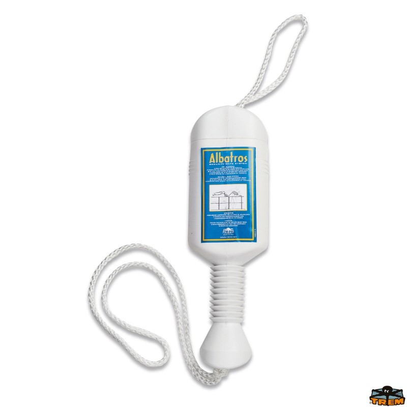 L'ensemble bouée équipée comprend une bouée, un feu à retournement et un support en fil d'inox.