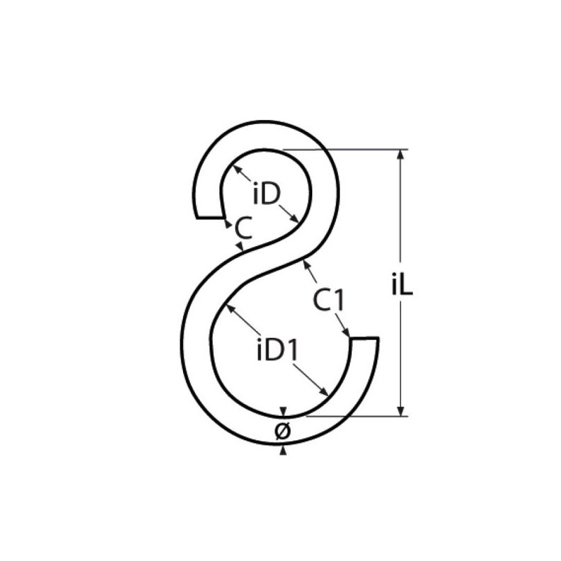 Crochet inox en S Ø6mm ouverture 15mm hauteur 50mm