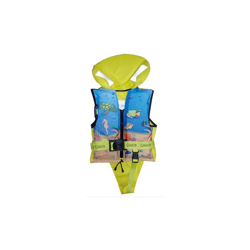 Flottabilité par mousse de polyéthylène, supérieure aux exigences de la norme (30 % de flottabilité en plus du minimum requis). Grand col enveloppant avec flottabilité accrue pour un maintien idéal de la tête. Sangle sous-cutale.