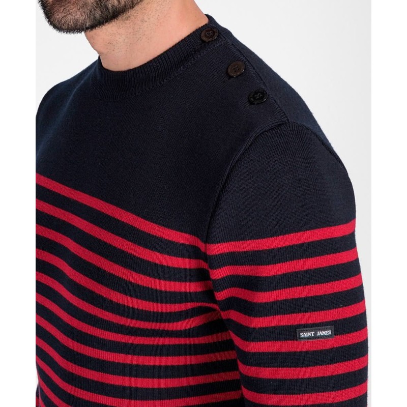 Pull marin cintré Saint James pour homme, Rochefort R, Navy/Medoc