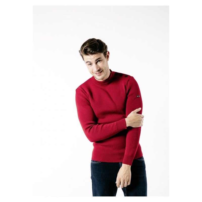 Pull marin Saint James Matelot cintré, uni rouge médoc