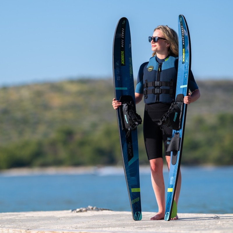 Ailerons lumineux pour une visibilité accrue Carène en V pour un bord à bord facile et un meilleur suivi Chausse avant confortable et talon réglable Chausse de slalom supplémentaire Construction injection RIM avec tiges métalliques supplémentaires pour la rigidité Fabriqué avec l'utilisation de l'énergie solaire Finition protectrice brillante sur le pont Graphique imprimé avec une encre à base d'eau écologique Pour le ski combo et le ski slalom d'entrée de gamme Skis niveau loisir Superposition supplémentaire pour la durabilité Taille de chausses 67": US 5,5-14 | Europe 36-47 Taille de chausses: 59" US 1-6 | Europe 32-40 Échelle de poids : 59" <55kg, 67": >50kg