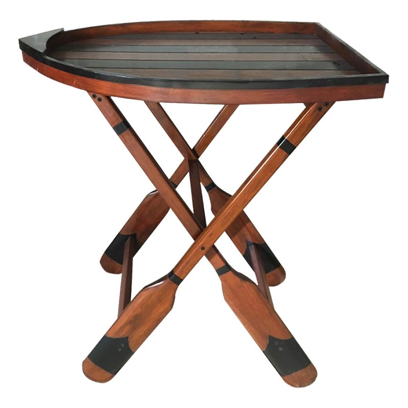 Jolie table qui peut servir comme table basse dans un salon ou table de chevet dans la chambre. Bois de Tilleul peint aux couleurs des ponts de bateau Dimensions : 77x41x82cm