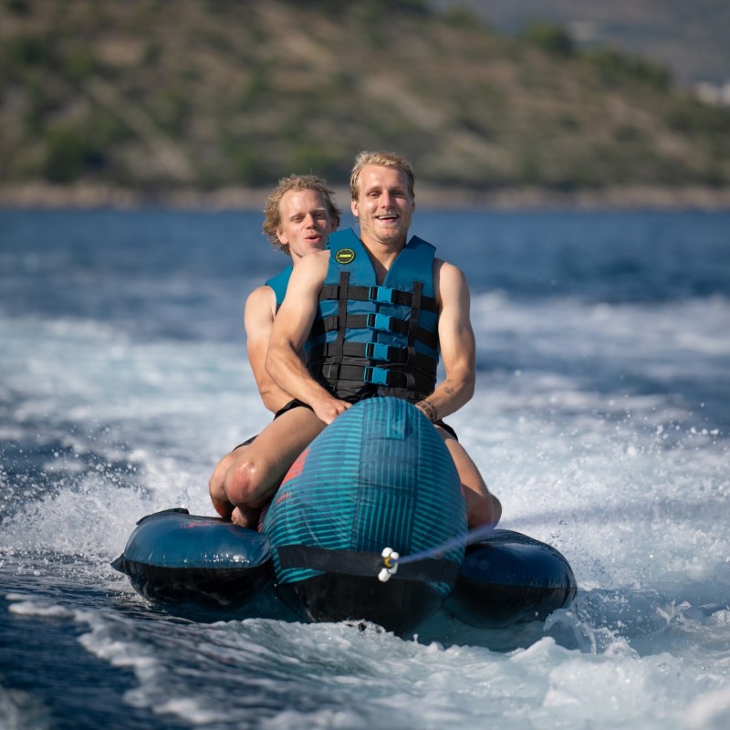 La Tribal II est la bouée favorite des amateurs de sensations fortes et peut gérer un maximum de 2 personnes courageuses. Un avantage est son plancher d'entrée d'air facile et son support dorsal gonflable. Mais quand le Tribal est allumé, c'est allumé ! Les 4 poignées de luxe avec néoprène protégeant les articulations assurent une prise confortable. Connectez rapidement la corde au système de connexion rapide de Jobe et profitez du plaisir extrême de la Tribal II. La Tribal II est recouverte de nylon 840 deniers le plus résistant - par rapport aux normes de l'industrie - et dotée d'une chambre à air en PVC de calibre 28.